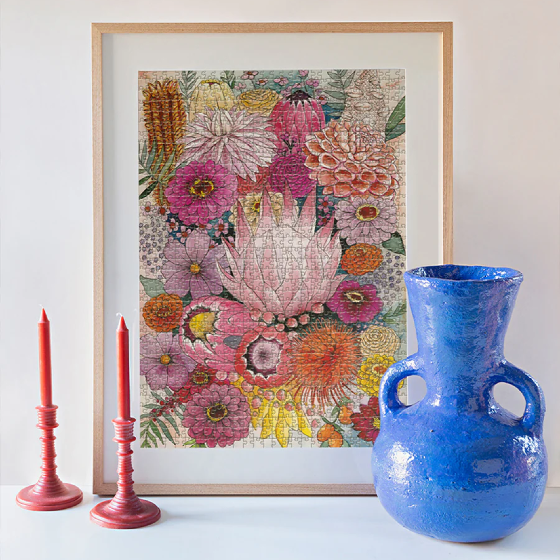 Her work is inspired by native blooms and coastal landscapes, often shaped by time spent in wildflower gardens collecting banksia and protea.